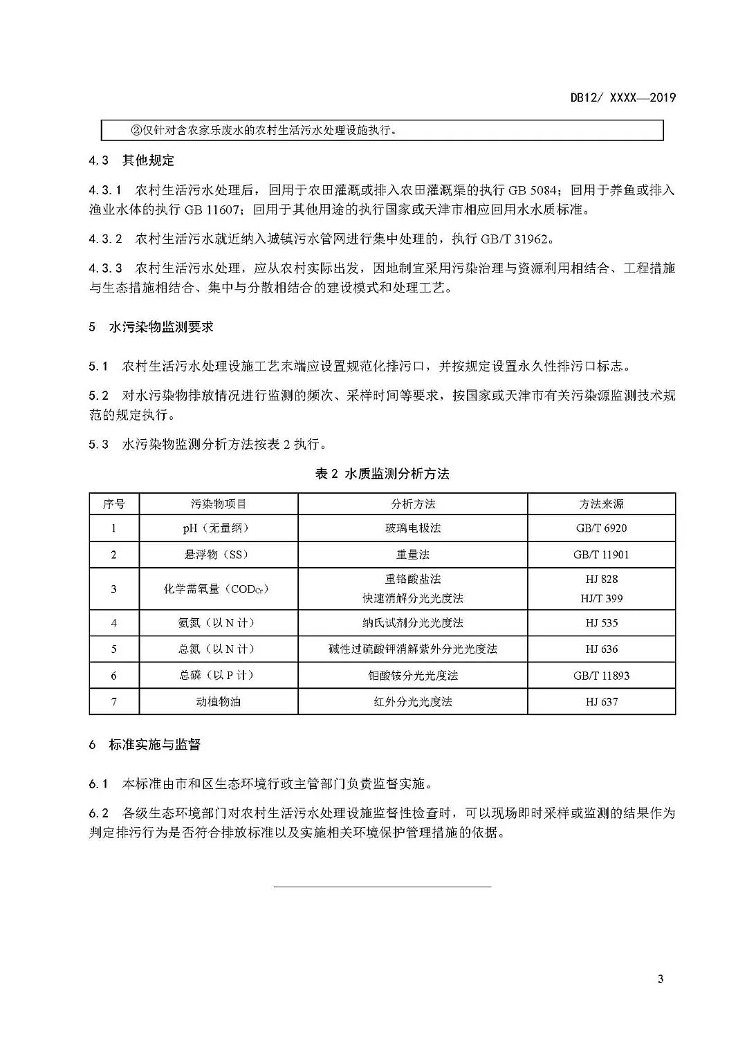 由此可見,天津市對農村污水處理和自然水體的保護的重視程度很高,從排入地表水IV類(含)以上功能水體就開始執行高要求的標準;對排入同類型水體來講,天津指標中SS、總磷、總氮、氨氮等指標均有不同程度的加嚴、最高限制甚至與北京城鎮污水處理廠水污染物排放標準DB 11/ 890—2012中B標準持平。