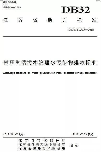 日前,江蘇公示《村莊生活污水治理水污染物排放標準(報批稿)》。全文如下:(最符合實際,最接地氣!點贊!)